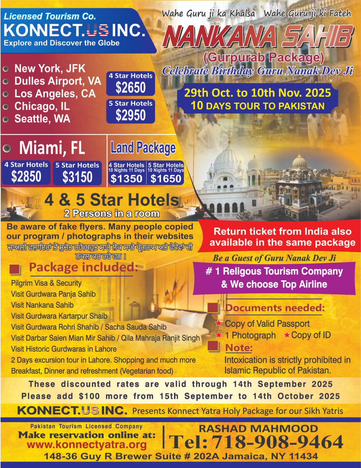 Konnect.us, Inc. presents Konnect Yatra Holy Package to Nankana Sahib